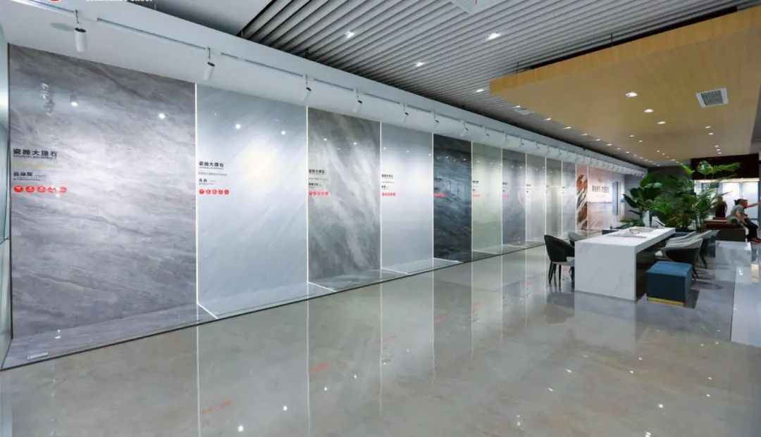 超白坯密縫系列,以無縫之美引領時代潮流趨勢,總部展廳將密縫鋪貼施工、鋪貼效果、花色展示盡數(shù)呈現(xiàn),多角度全方位地展示新品之美。