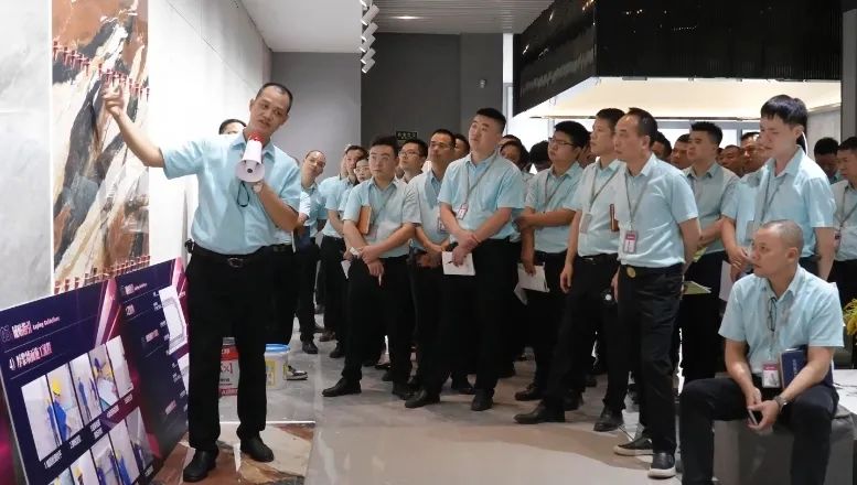優(yōu)秀的服務是產(chǎn)品最好的配套。在陶博會來臨之際,德田陶瓷組織了一場內部培訓會議,通過專業(yè)的講解、實際的操作演練,從密縫系列產(chǎn)品知識到鋪貼技巧,從客戶服務到銷售話術,全方位的培訓內容深化提升了銷售人員的服務質量,為賦能終端奠定了充分的基礎。